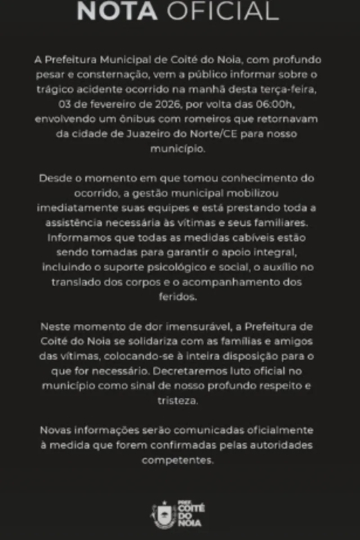 A administração municipal reforçou o compromisso com a transparência e garantiu que novas informações serão divulgadas conforme os dados forem validados pelas autoridades de segurança e saúde. A tragédia abalou a pequena cidade do Agreste alagoano, que hoje chora a perda de seus cidadãos em um momento que deveria ser de celebração religiosa.